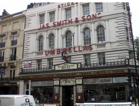 Toko payung pertama disana bernama "James Smith and Sons" yang buka pada tahun 1830 dan sampai sekarang masih menjual payung, alamatnya di 53 New Oxford Street, London.
